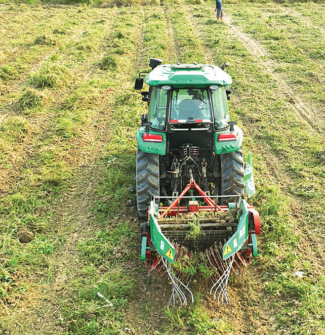 日前,在良井镇矮光村的进村主干道旁,一片60亩的花生地迎来收获。两辆花生起果机下地,很快将花生秧连根拔起,经过简单晾晒,人们便将它们收到农田边停放的花生摘果机里,经过初加工,一颗颗花生脱落出来,同时花生苗被碾碎成粉回归田里。这是顺苗农业项目在矮光村基地的第一茬收获,也是矮光村摸索村企合作的新尝试,双方将在深挖土地资源、彰显特色优势、延伸产业链条上作文章,助推乡村振兴、“百千万工程”再上新台阶。