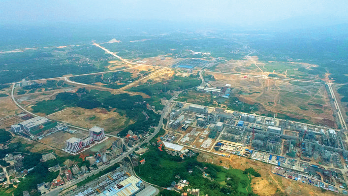 惠州新材料产业园位于惠东县白花镇,是全市重点打造的千亿级产业园区之一,是惠州建设全球石化产业高地的重要战场,也是惠州打造广东高质量发展新增长极的重要支撑,为惠东发展带来重大机遇、注入强劲动能。近年来,惠东县在上级政府的大力支持下,克服各种困难,筹集资金不断加大产业园路道等配套基础设施建设。目前建设完成和在建的项目包括产业园起步区化二路(一期)、化三路(一期)、科创中心(一期)、化一路、化四路、北环一路、化三路北延段、化二路北延段、化北路、惠新路等多条园区道路以及污水处理厂等。