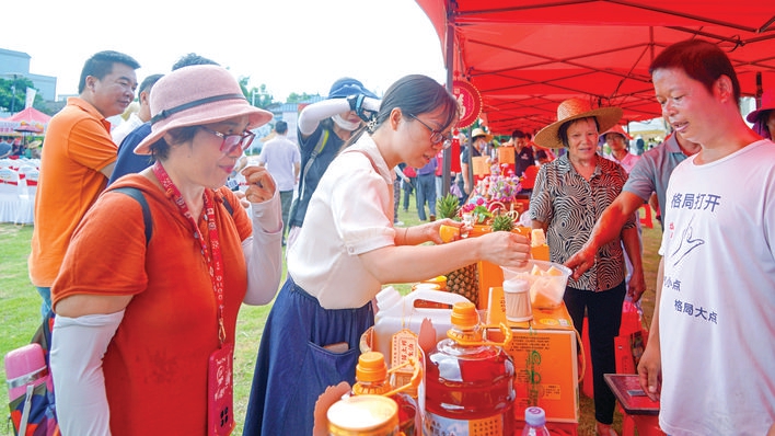 汝湖镇的甜玉米、横沥镇的丝苗米、良井的凤梨、龙门县的金线莲、册亨县的山茶油……丰收节现场人头攒动、热闹非凡,琳琅满目的农产品摊位引人驻足,一大批农特产品展销充分展示了惠州农业的丰富多样性和高质量发展成果。现场还举办“五品一展”活动,包括品赏和美乡村摄影成果展、品鉴农特产品和非遗产品、品趣农闲活动、品阅农耕文化展示老农具、云品惠城粤字号产品以及展示横沥“三产融合”成果和参观横沥镇乡村振兴成效。同时,主办方还邀请了黔西南州有关企事业单位共享这场丰收盛会。