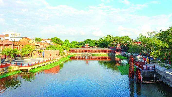 蓝天白云下,踏着柏油村道,穿过茹屋门楼,茹屋的水乡气息扑面而来:古色古香的水上栈道、池塘边硕大的水车、典雅的长廊……在石湾镇源头村,茹屋村民小组凭借深厚绚丽的人文和红色基因的传承,实现华丽变身。这是源头村在典型村培育工作中,宜居宜业和美乡村建设不断带来可喜变化的真实写照。